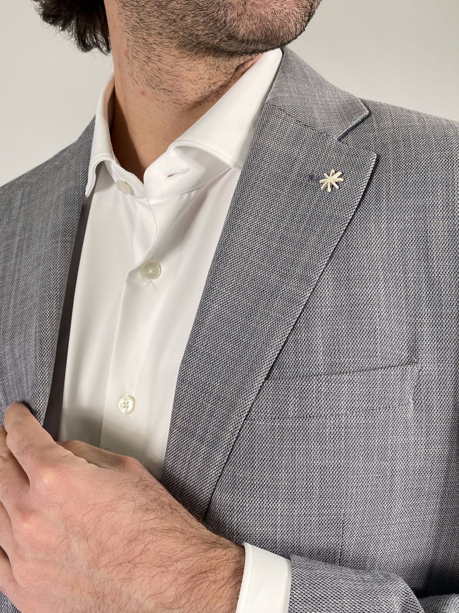 Giacca monopetto con 2 bottoni, maniche con bottoni.