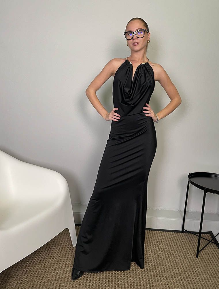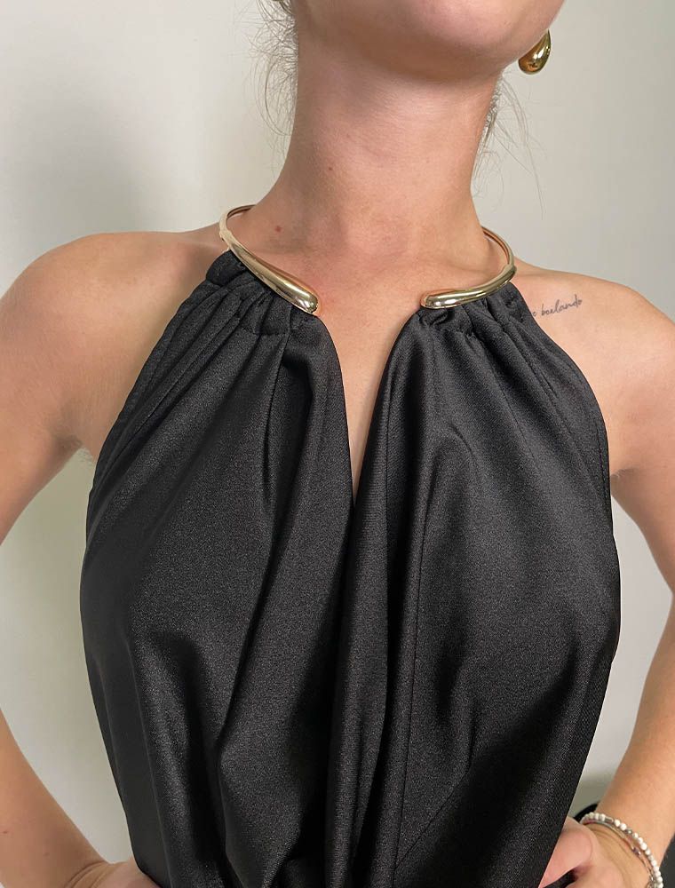 Abito con collana rigida e non rimovibile.