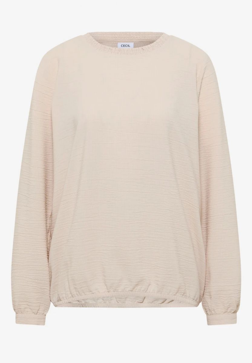 Blusa girocollo. orlo elastico. manic... - beige - 2