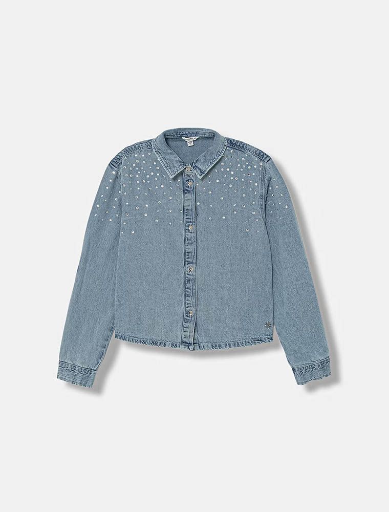 Camicia in jeans con applicazioni in strass.