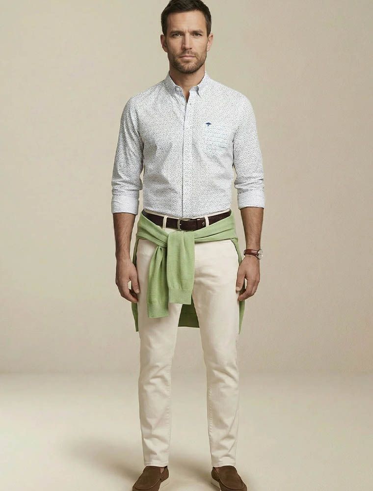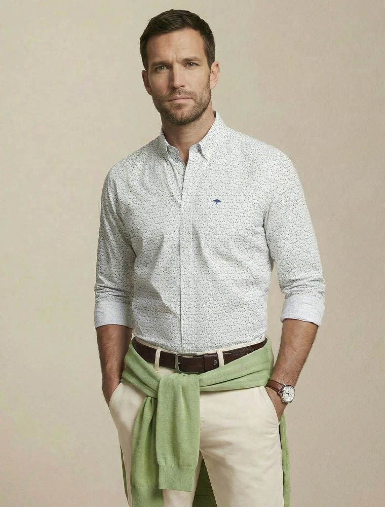 Camicia manica lunga in fantasia.