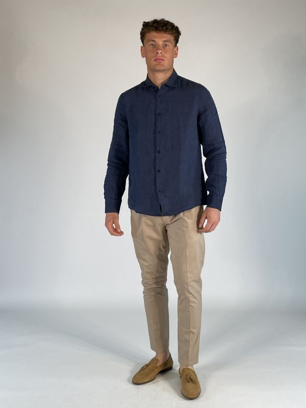 Camicia Manica Lunga Lino Seinse - Blu Navy