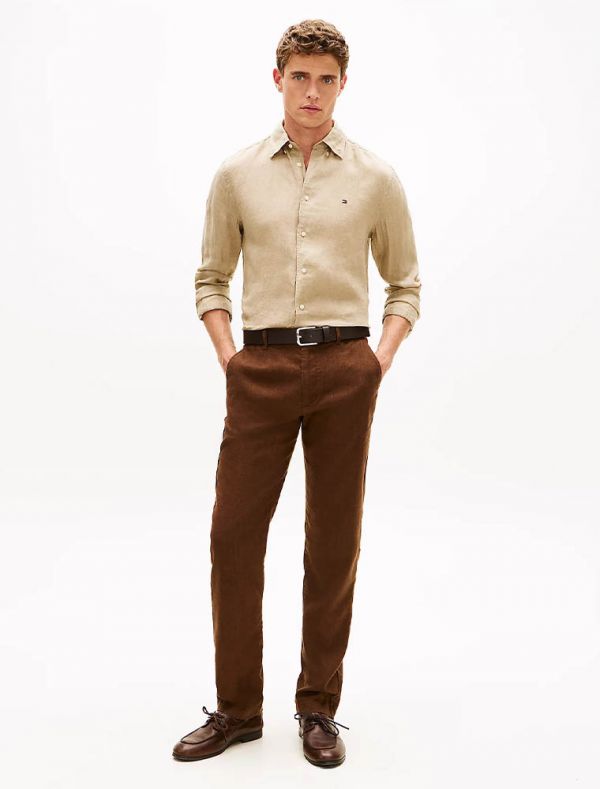 Camicia Manica Lunga Lino Tommy Hilfiger - Beige