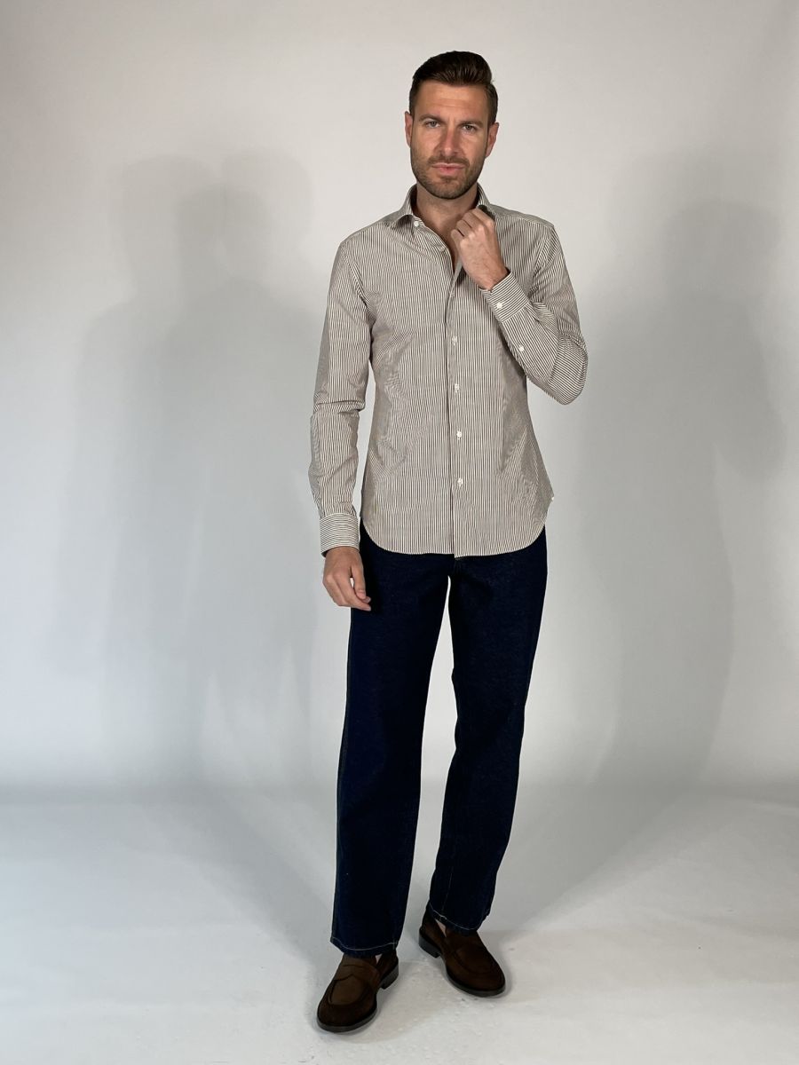 Camicia Manica Lunga Xacus - Bianco Marrone