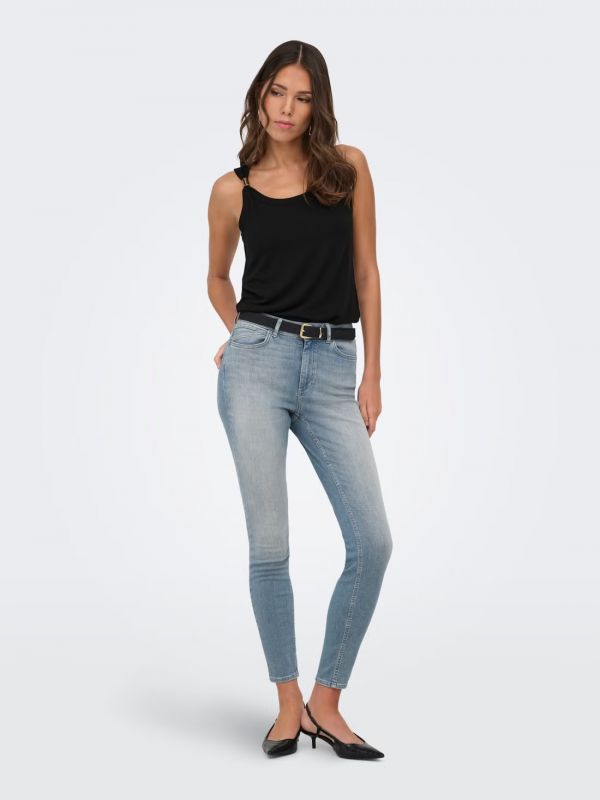 Canotta scollata con dettaglio metallico sulla spalla.