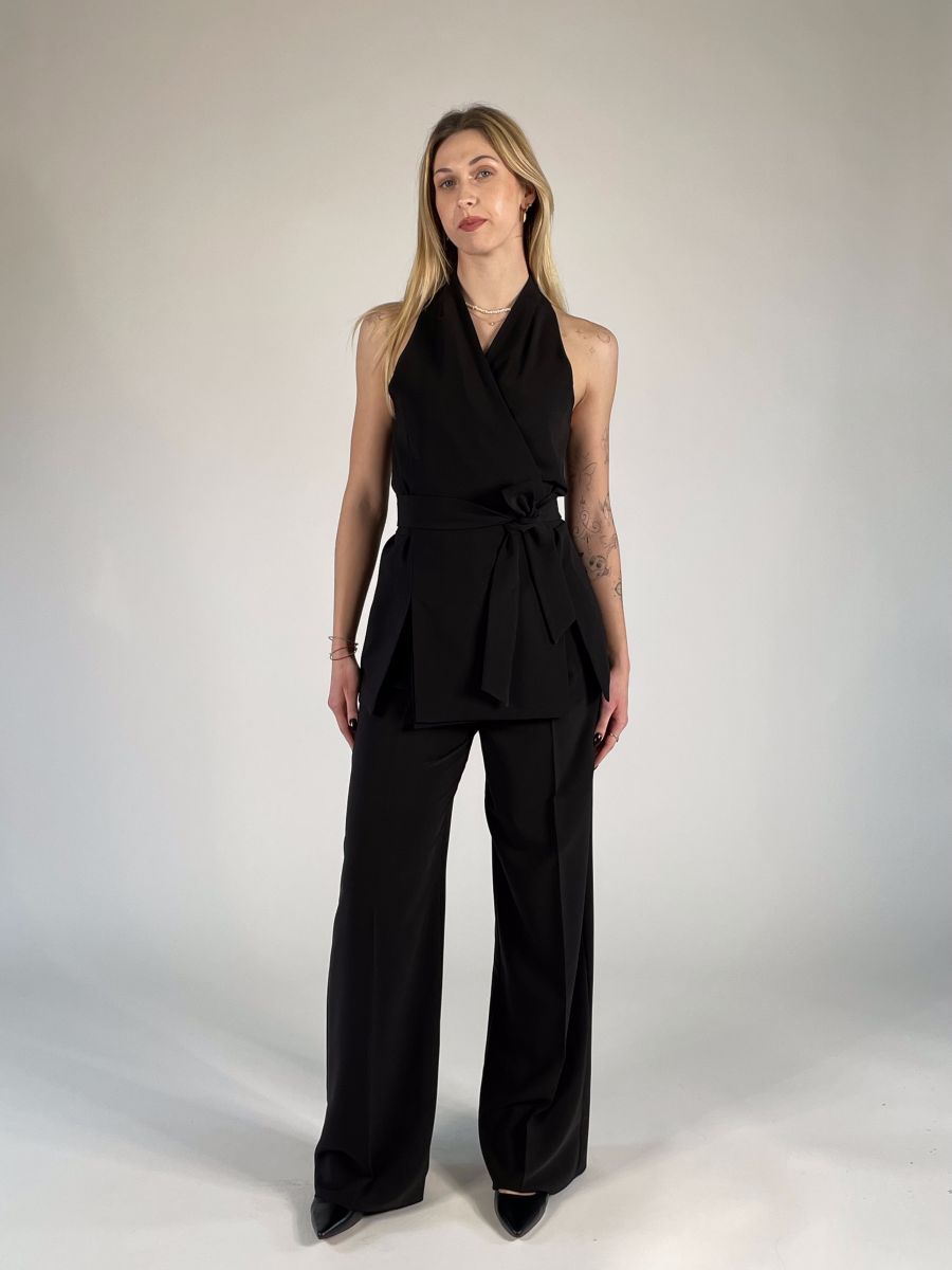 Casacca smanicata con chiusura a nastro in vita.