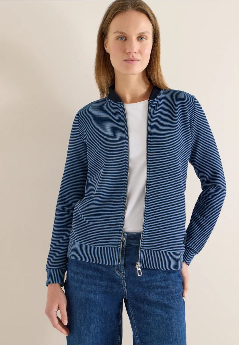 Felpa aperta girocollo. collo a coste... - blu - 2