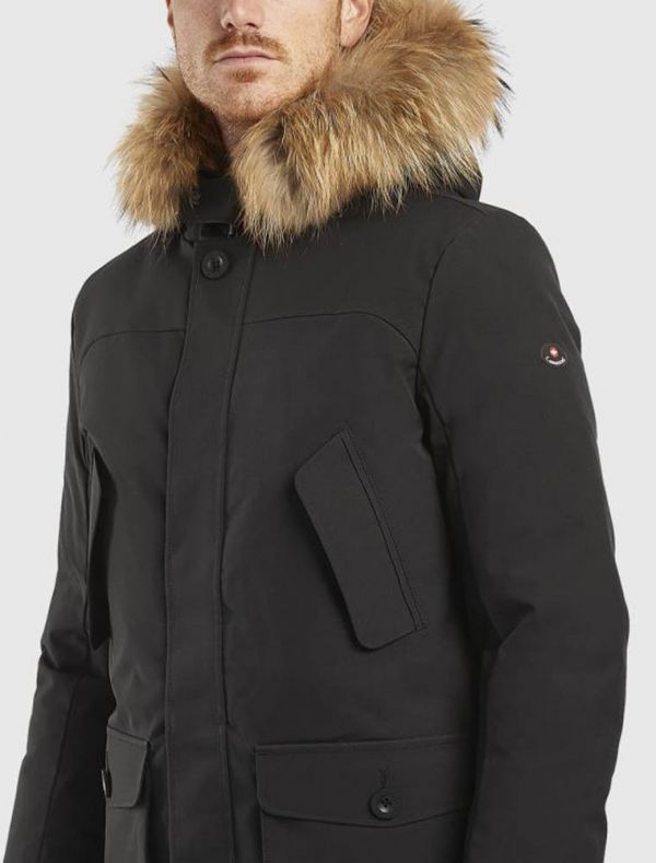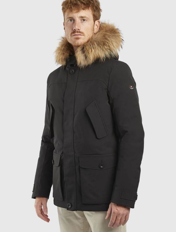 Giaccone con cappuccio e pelliccia.