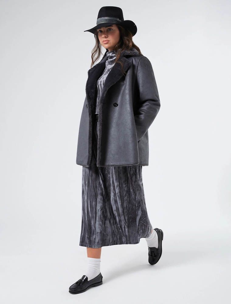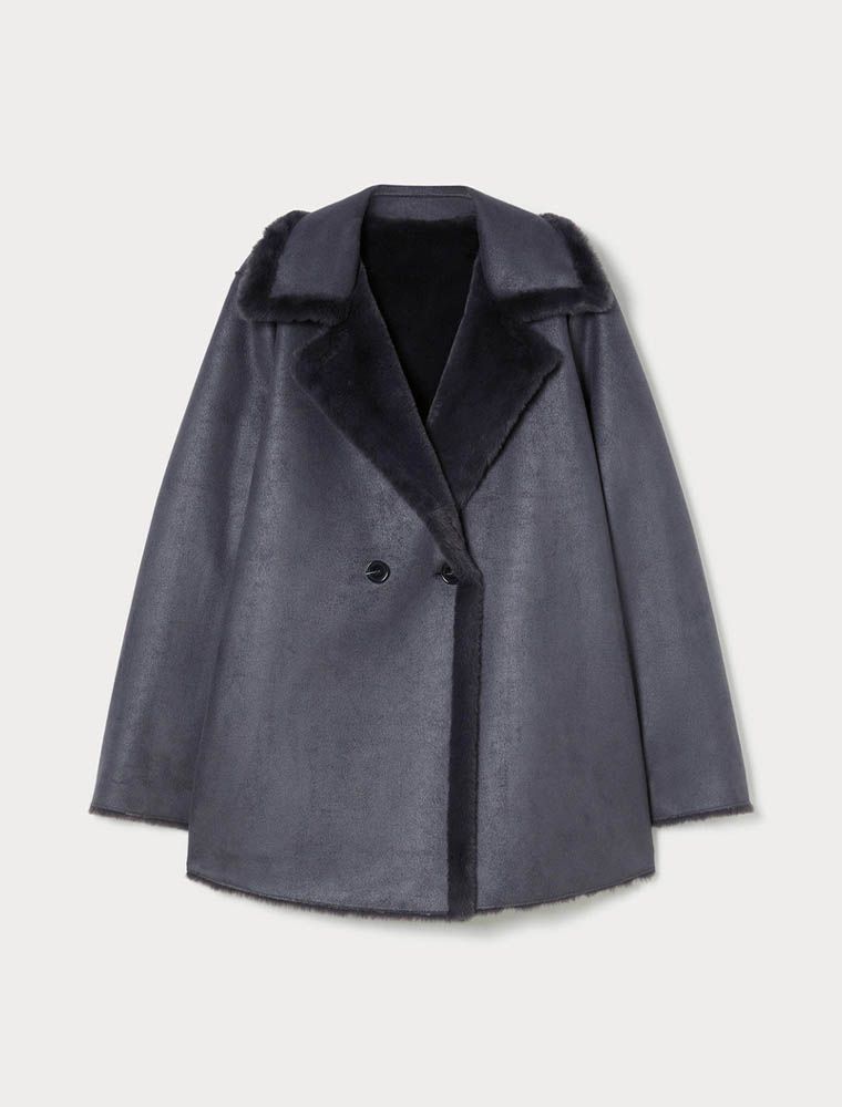 Giaccone caban reversibile in tessuto morbido scamosciato da un lato e dalla texture soffice dall'altro.