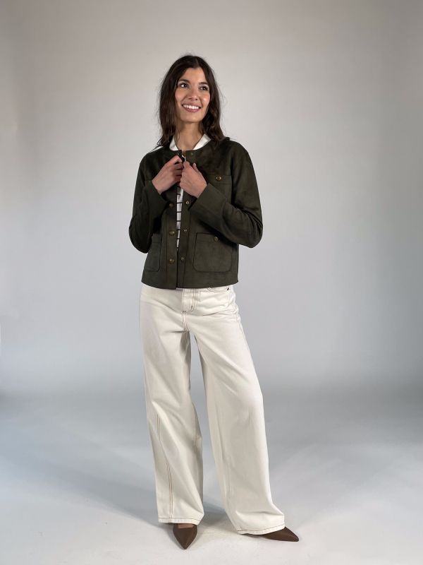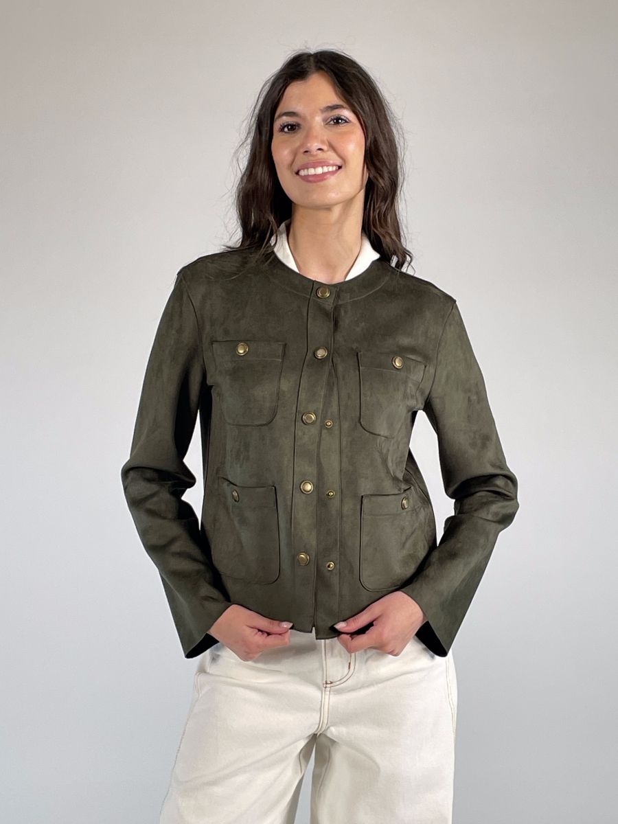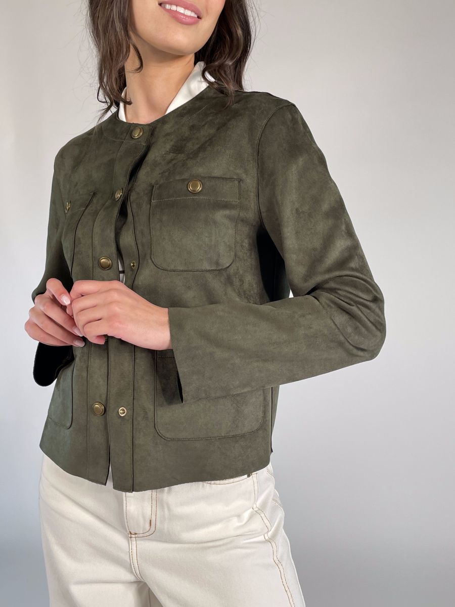 Giubbino scamosciato girocollo.