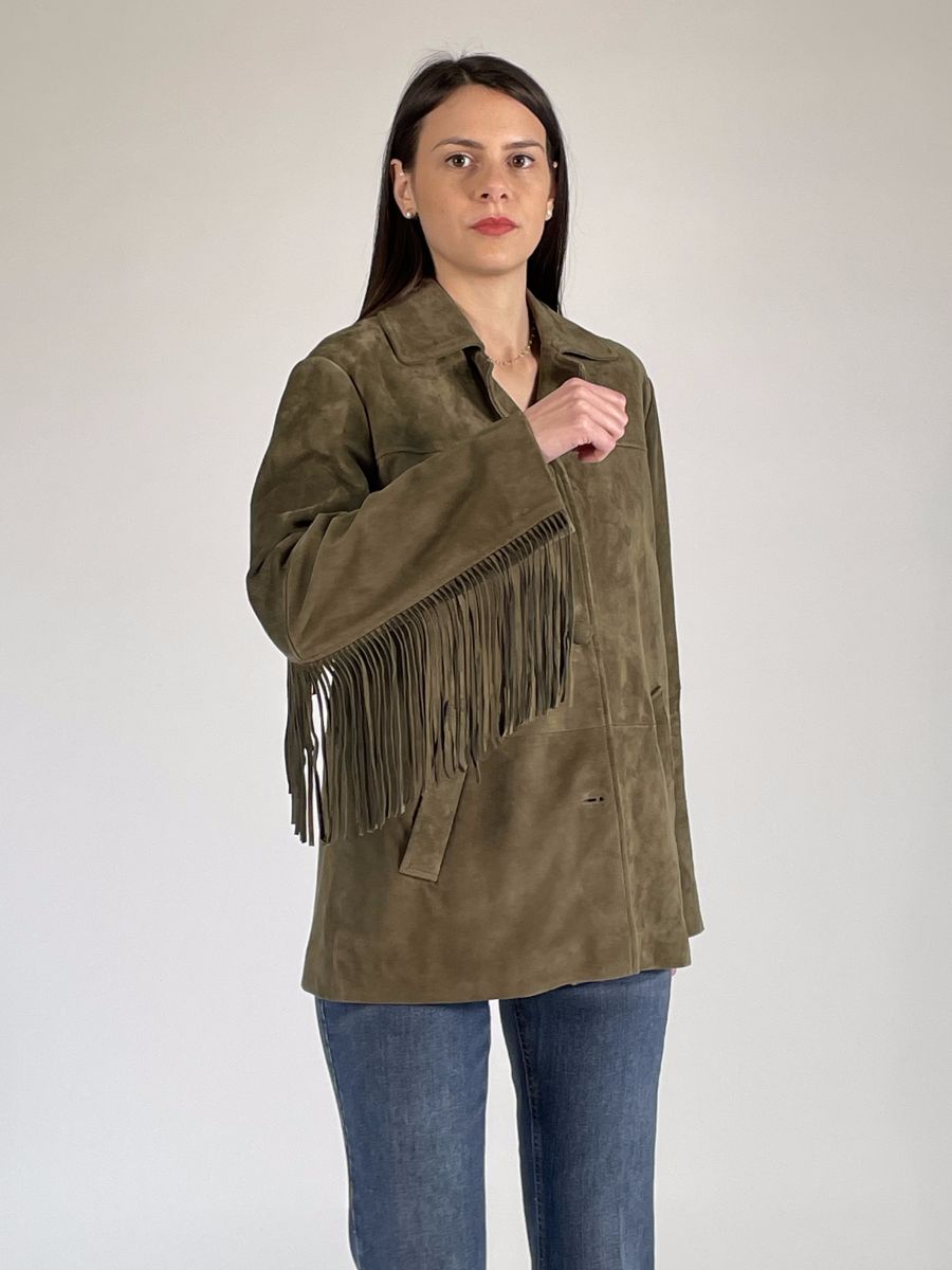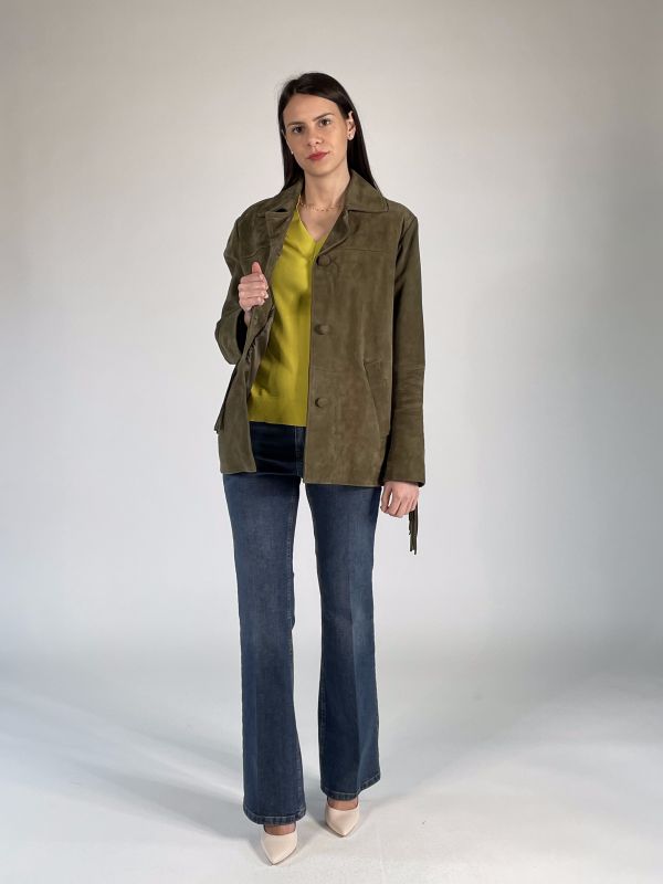 Giubbino scamosciato con colleto.