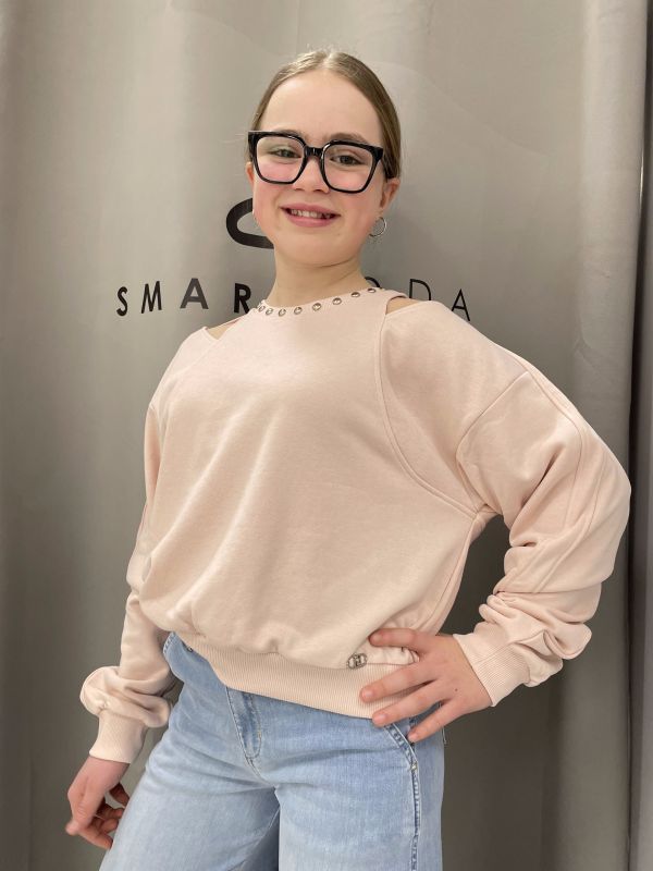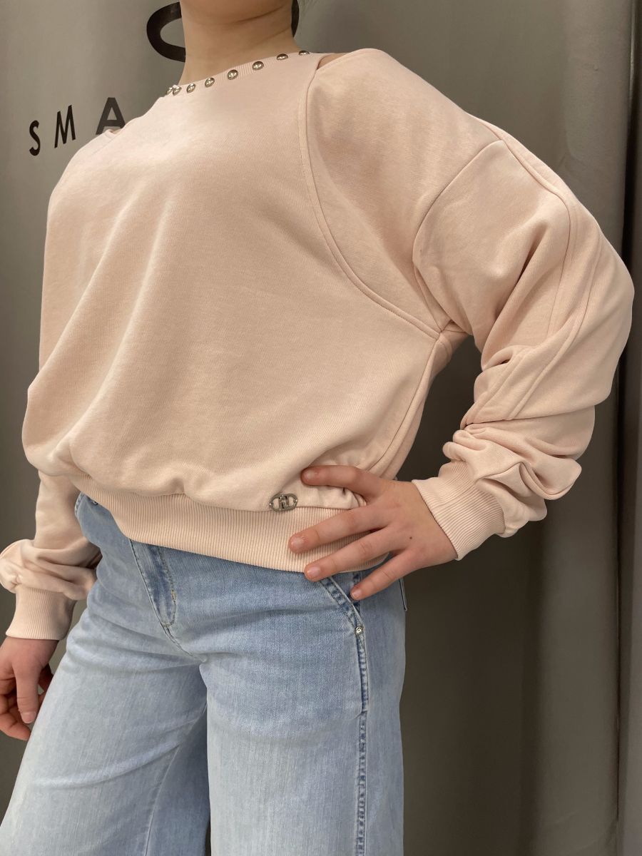 Maglia in felpa con taglio su spalle.
