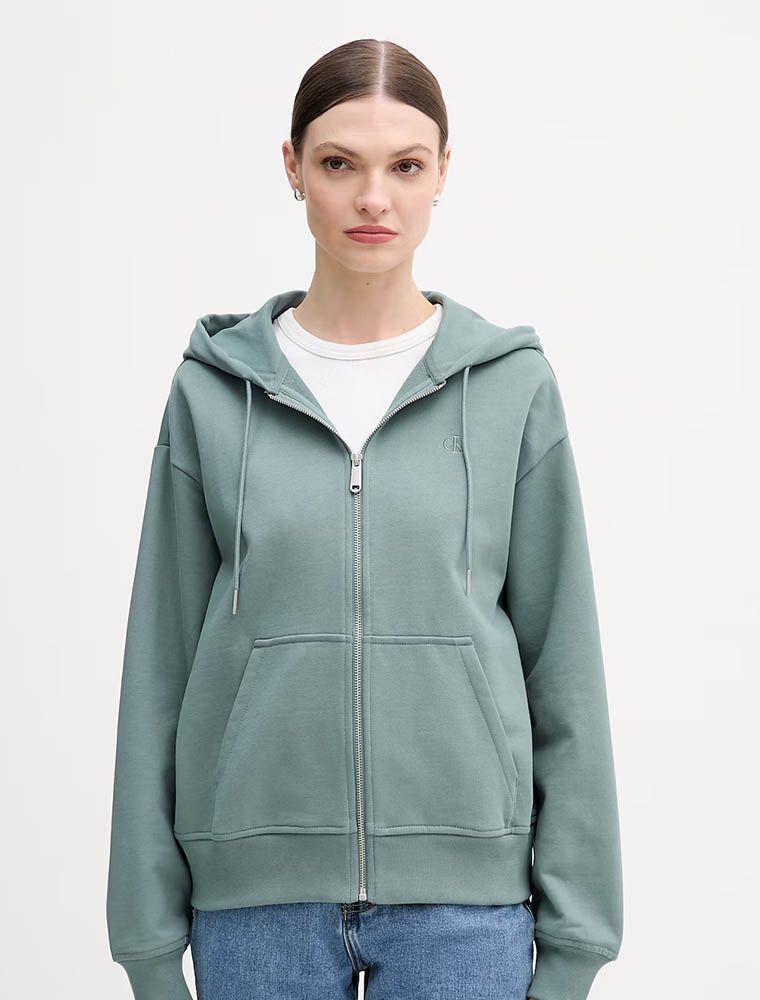 Maglia In Felpa Zip Cappuccio Calvin Klein - Green