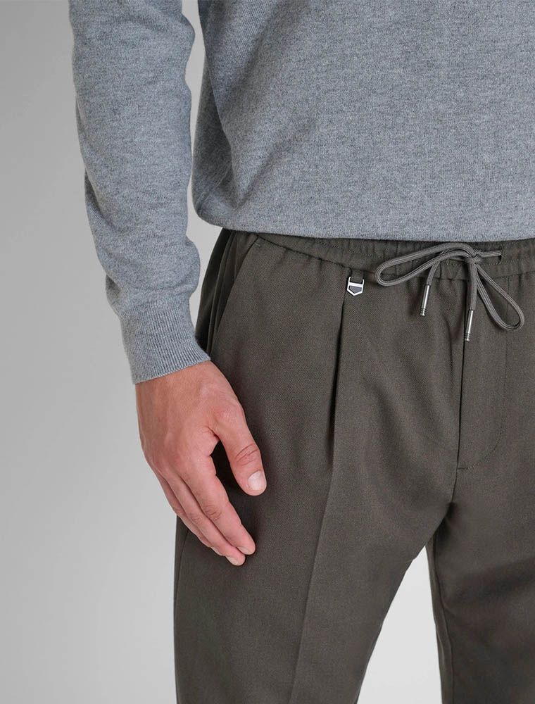 Pantalone in twill elasticizzato in vita.