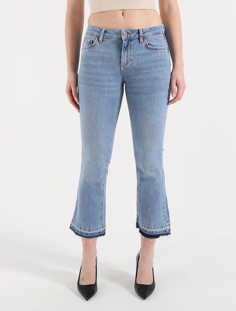 Pantalone jeans bottom up leggermente a zampetta.