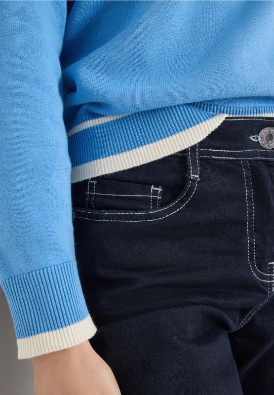 Pullover girocollo manica lunga. coll... - blu - 0