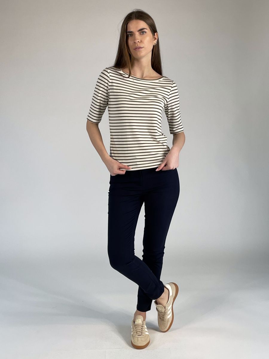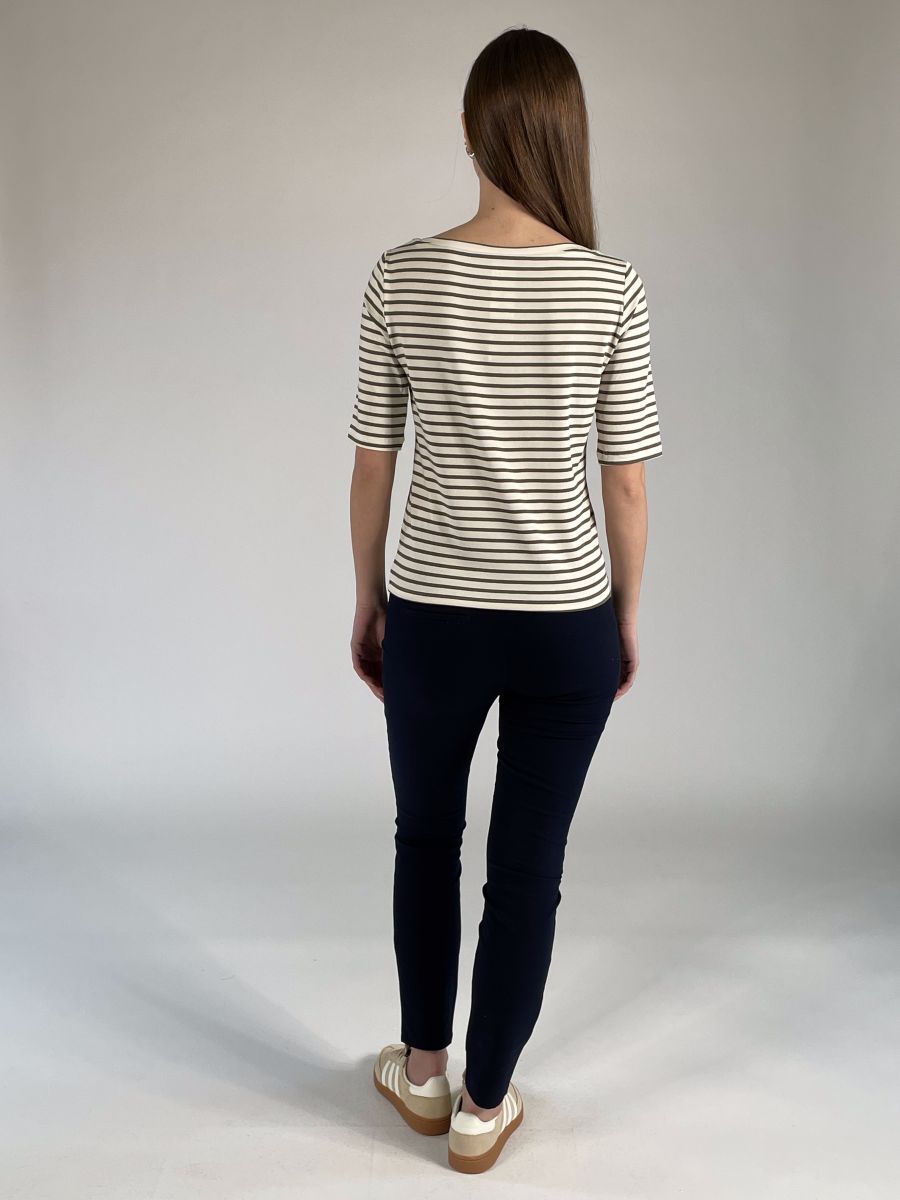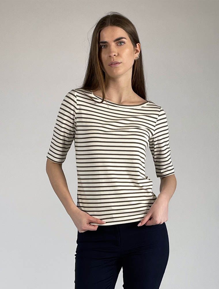 T-shirt con scollo a barchetta e manica al gomito.