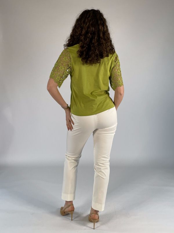 T-shirt girocollo con maniche in pizzo traforate.