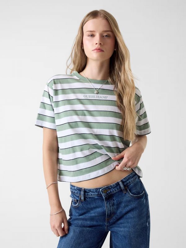 T-shirt Manica Corta Guess Jeans - Verde Bianco