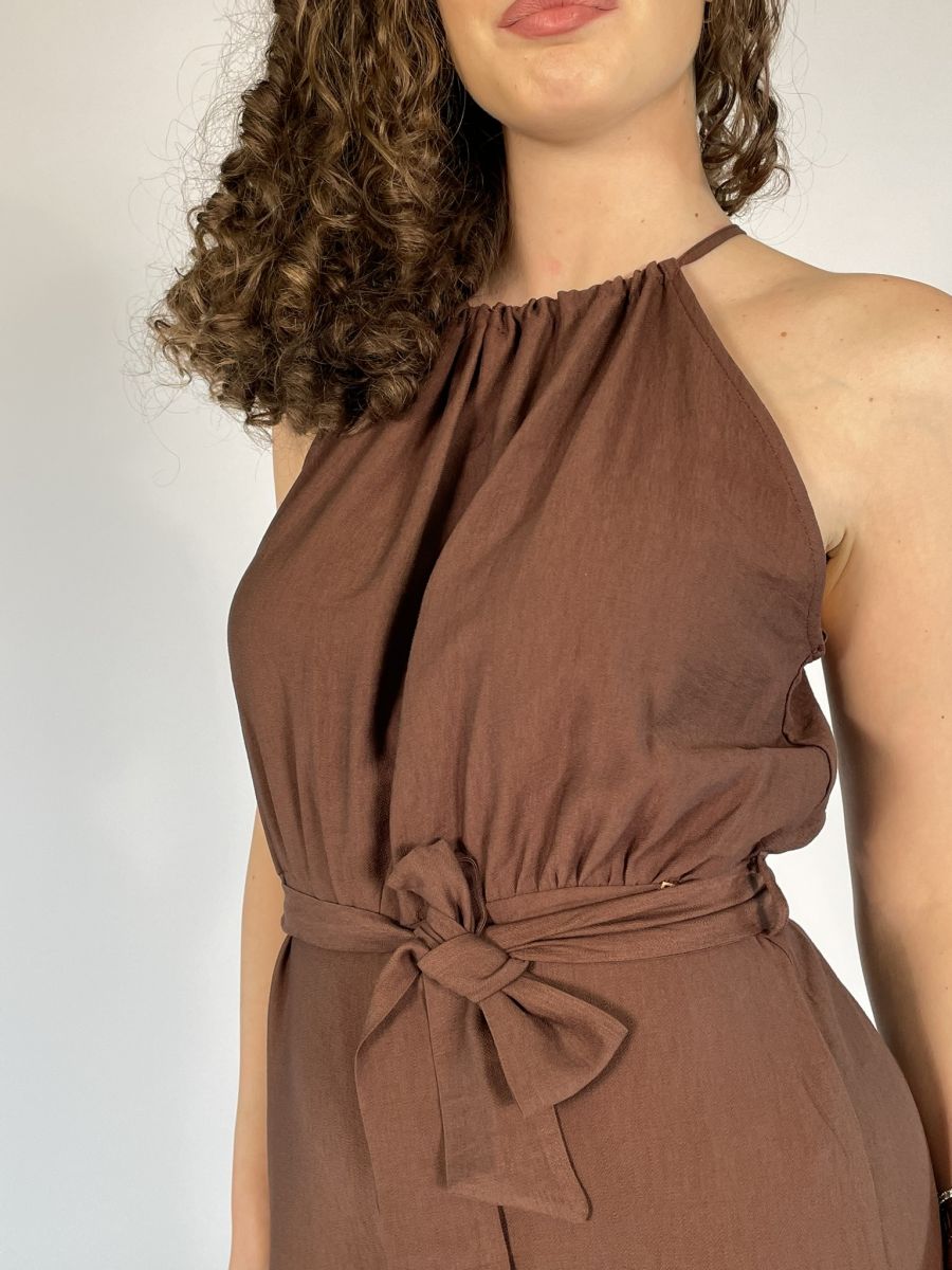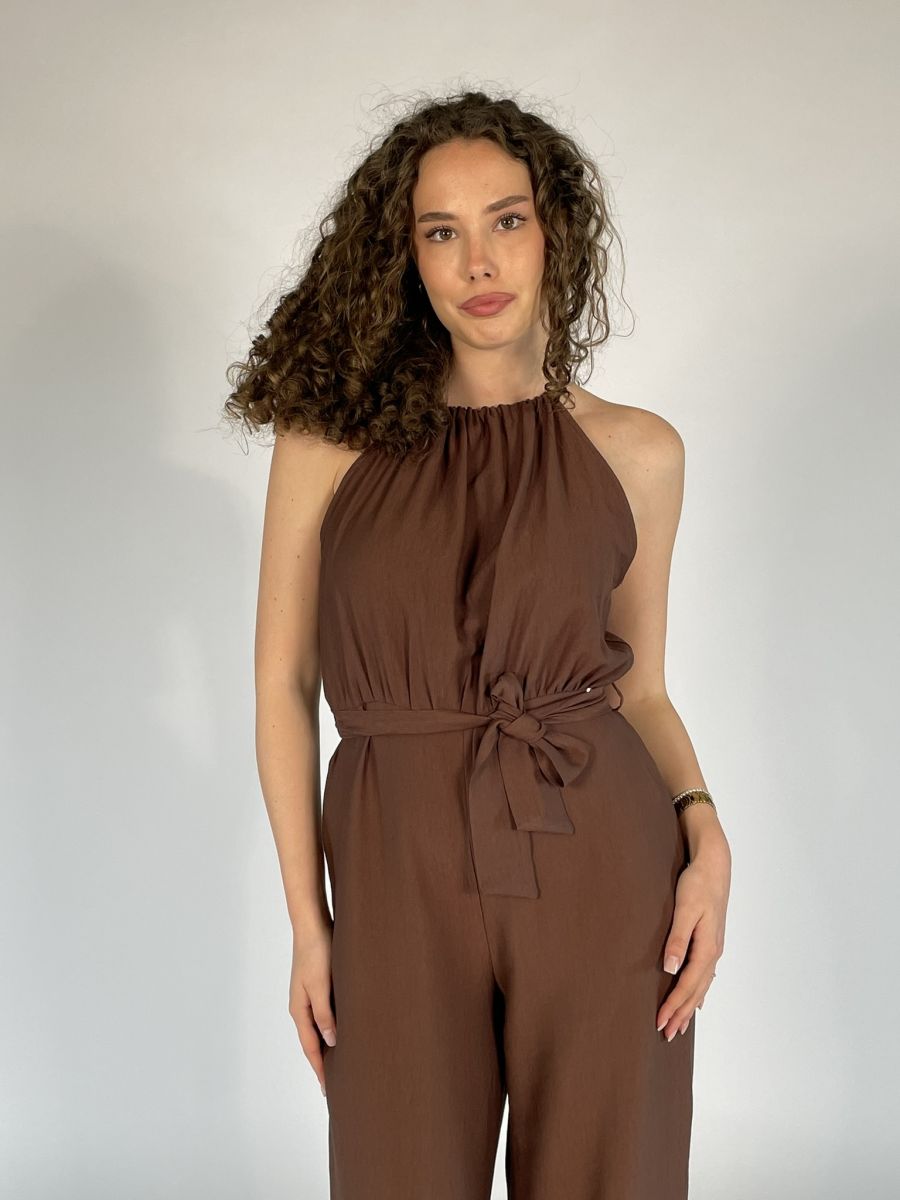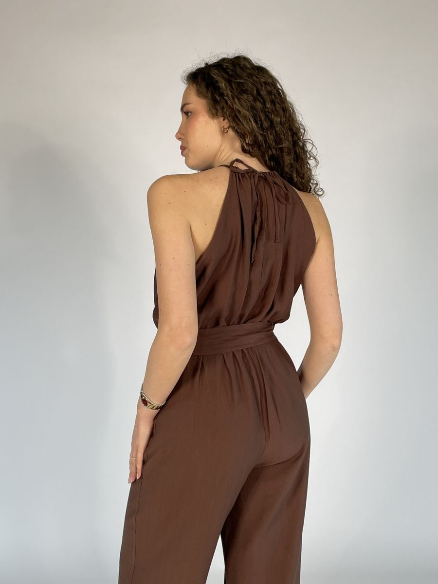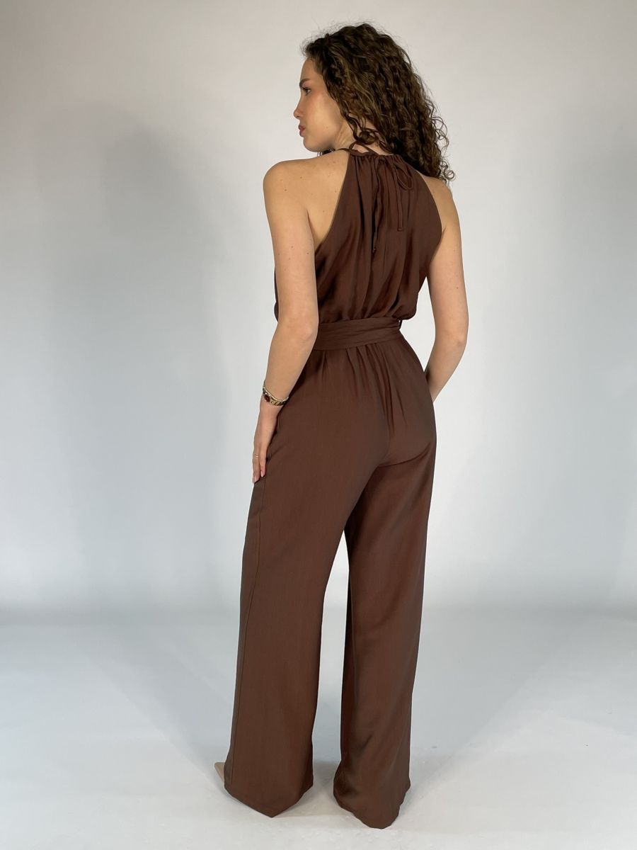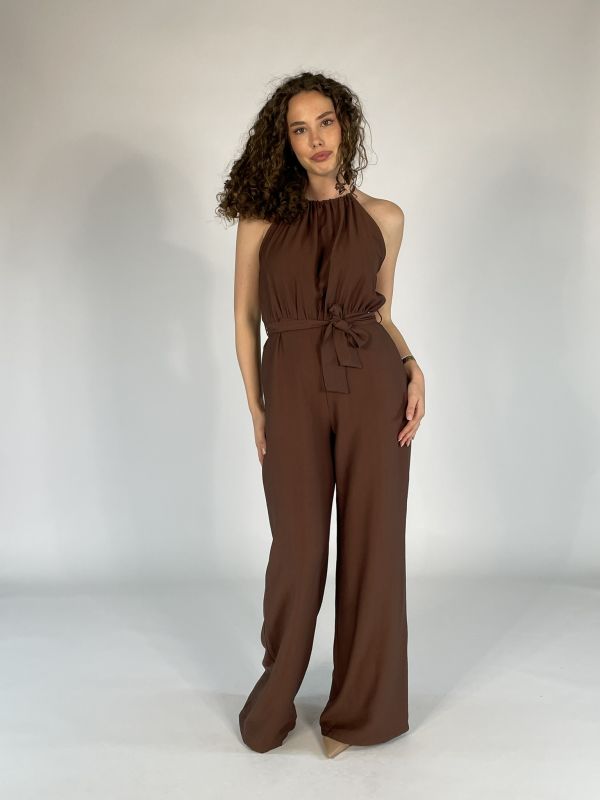 Tuta con pantalone lungo a palazzo.