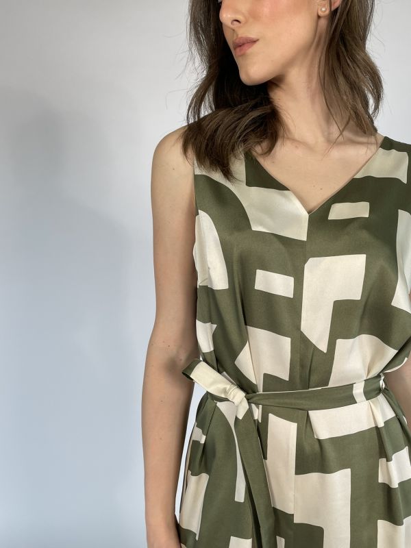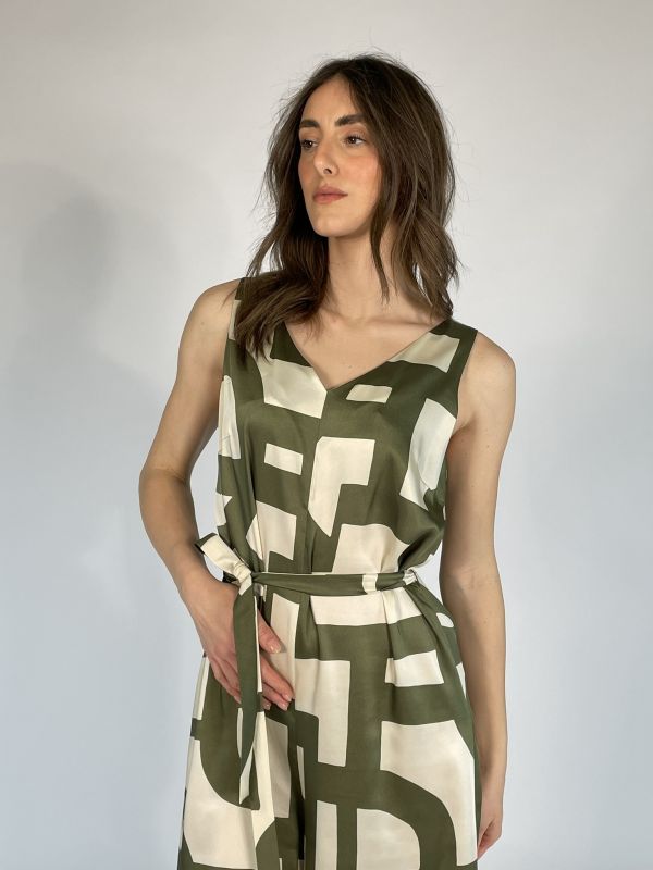 Tuta smanicata con pantalone a palazzo.