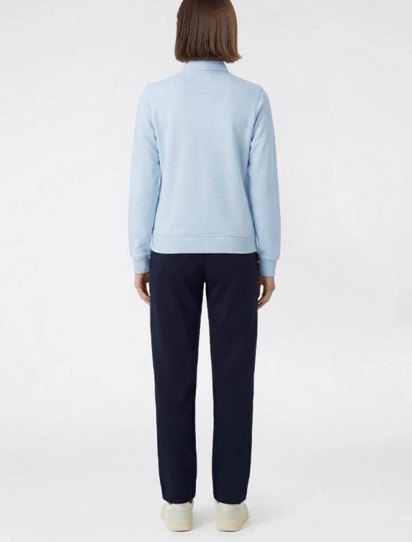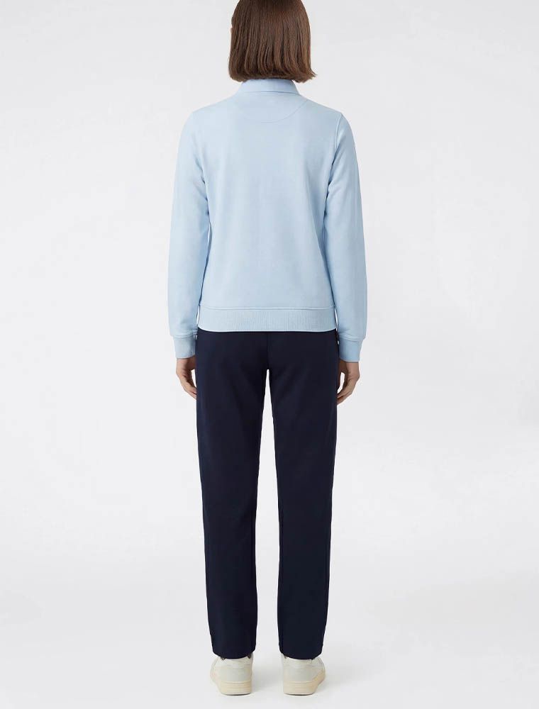felpa aperta con colletto, chiusura con zip, due tasche laerali a filetto, polsini e fondo a coste.