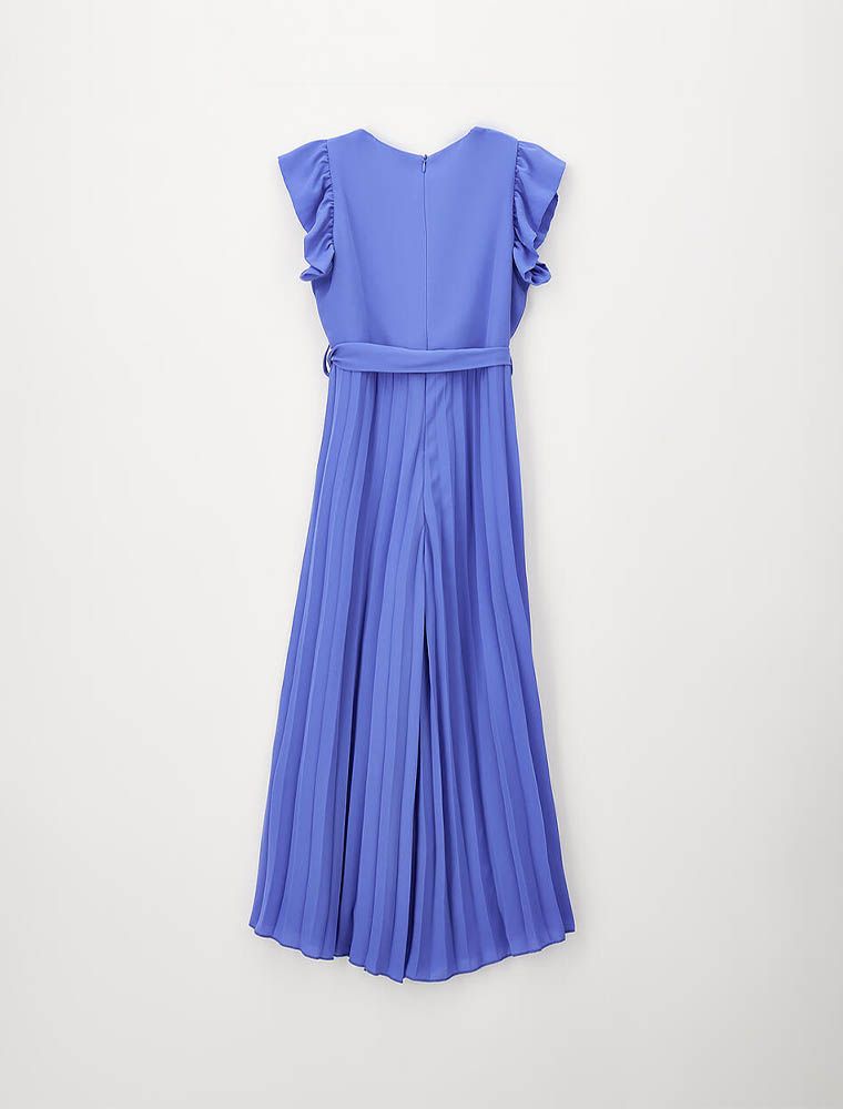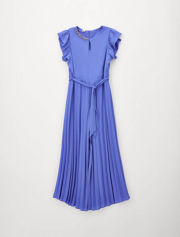 Tuta elegante con manica volant e pantalone plissettato.